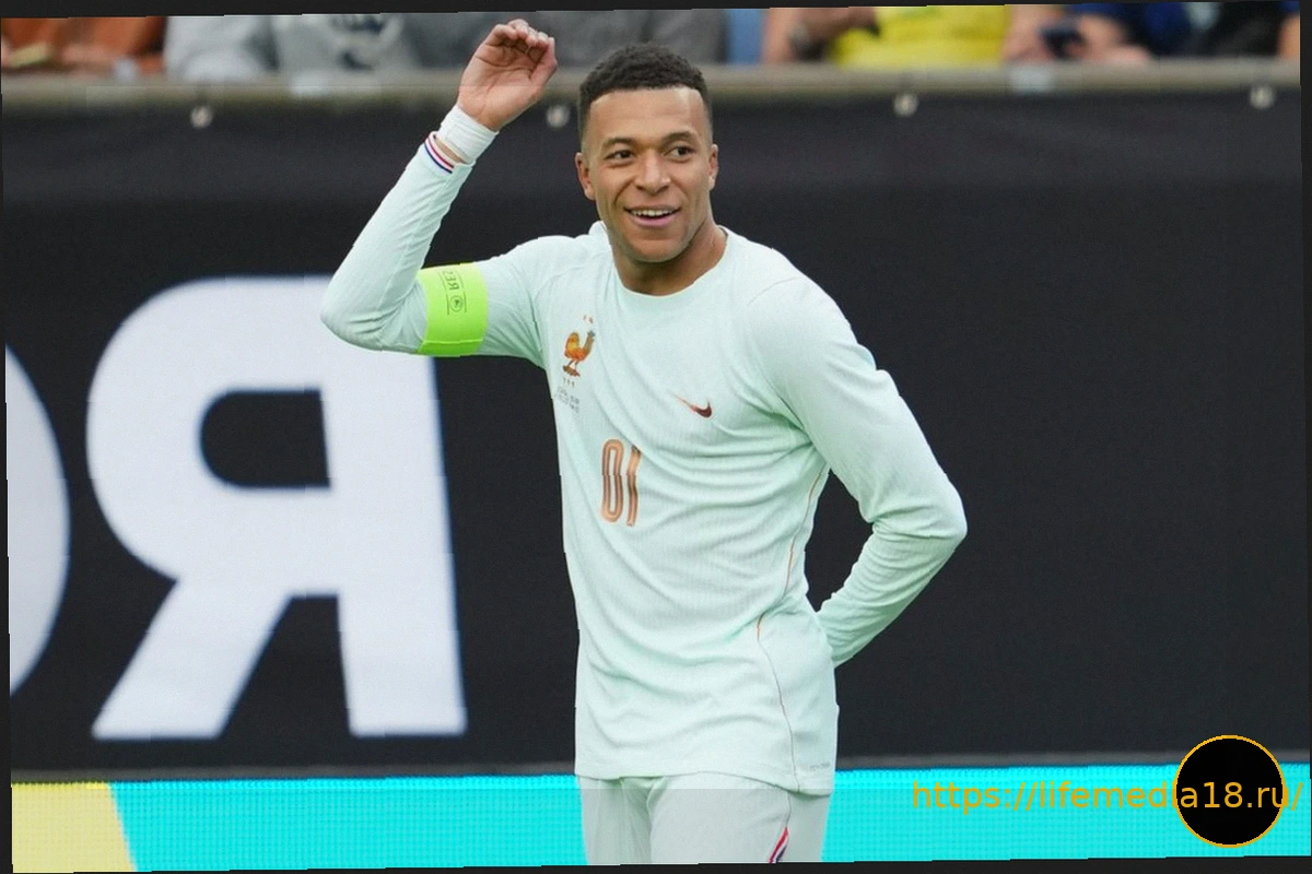 Килиан Мбаппе из сборной Франции празднует свой гол в ворота Бразилии, который укрепил преимущество его команды.