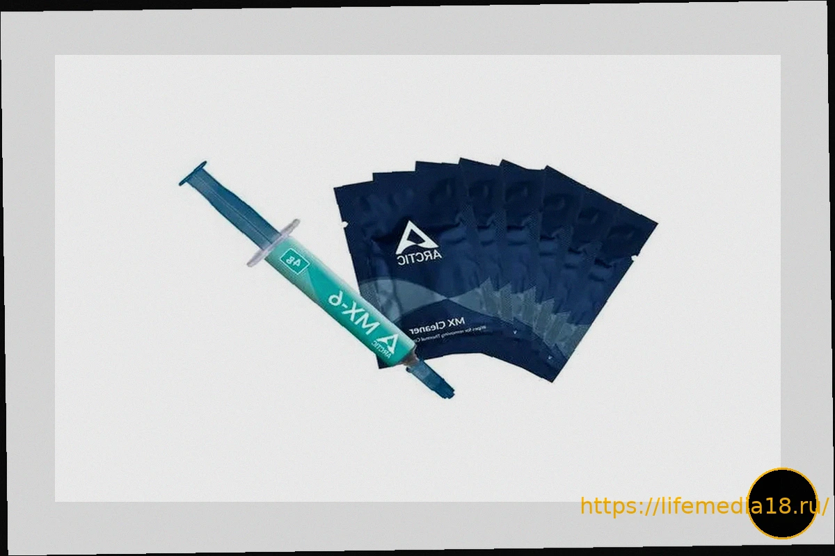 Во время установки центрального процессора и системы охлаждения я обнаружил, что комплектная термопаста MX-6 по своей консистенции больше напоминает резину или пластилин. Её невозможно равномерно размазать по поверхности. Мне пришлось нанести её в виде комка и немного приплюснуть, чтобы хоть как-то распределить.